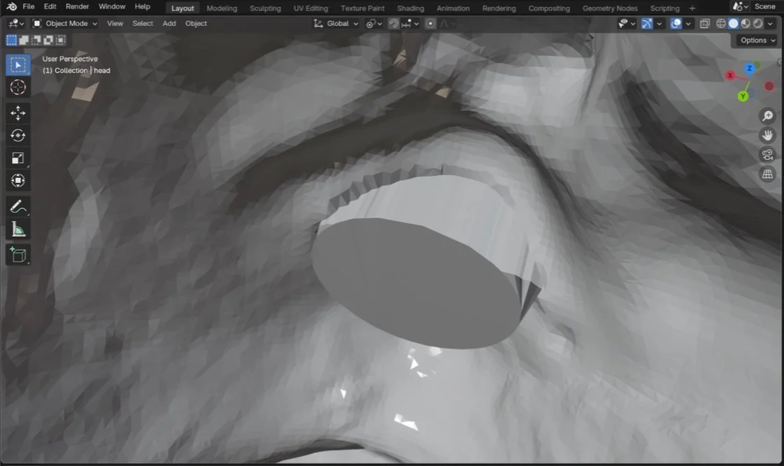 Due to importing the model from Artec into Blender, the topology of each vertex had to be adjusted and aligned as much as possible.