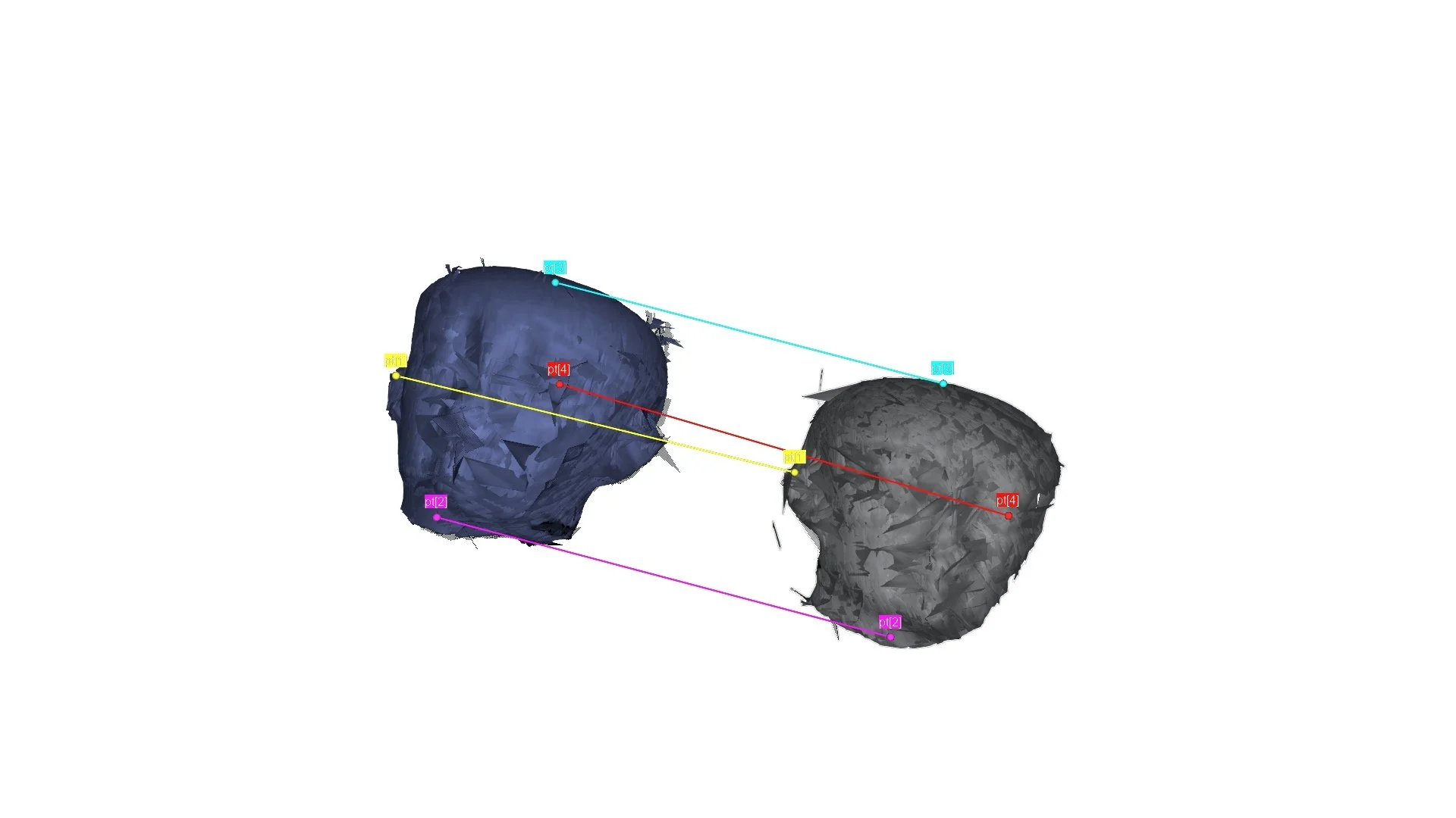 Alignment between all the surrounding scans of the heads are then attempted. Points of interest between each scan are carefully chose.